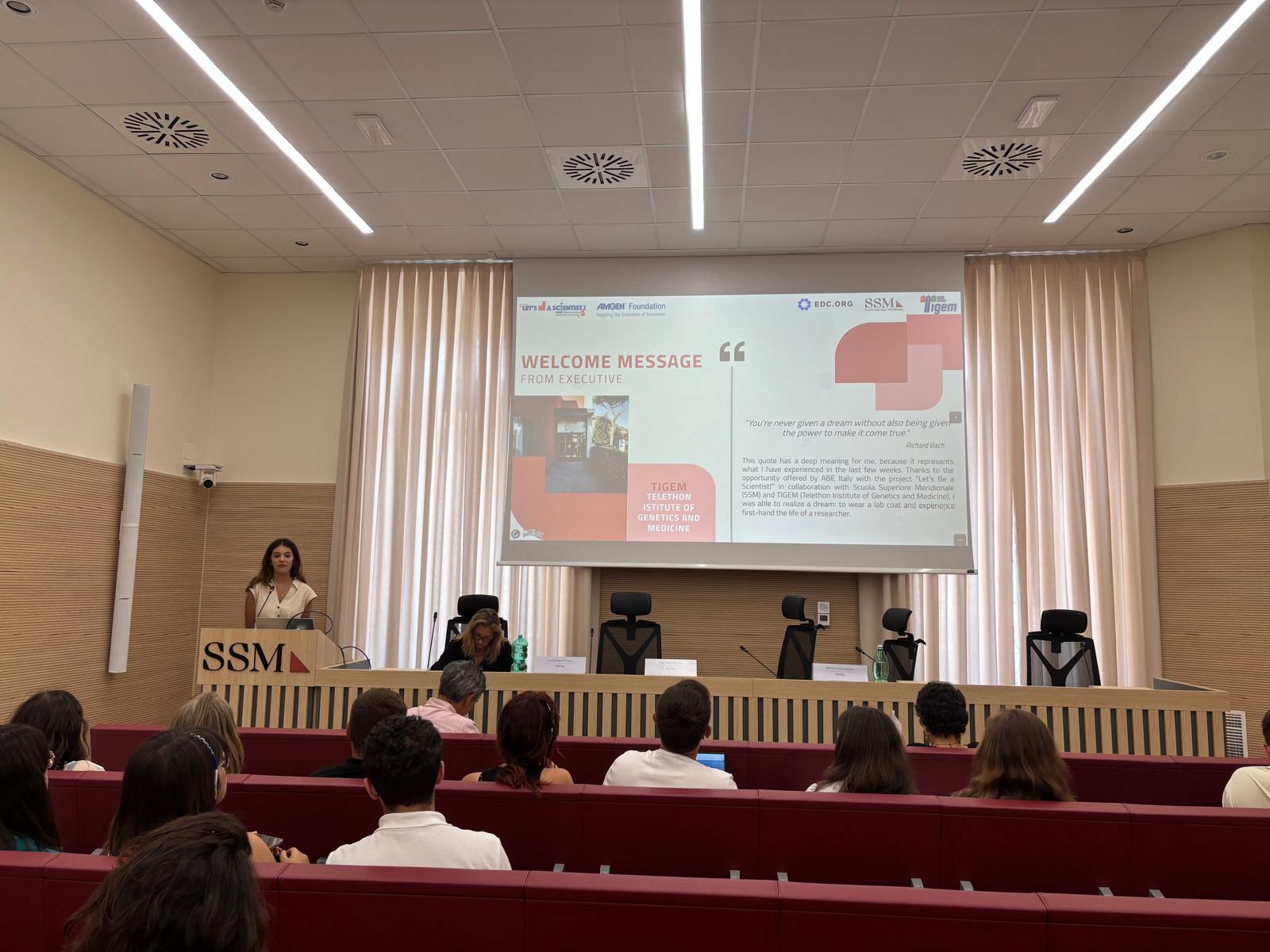 Scienza, formazione e comunicazione: l'anima del progetto Let's Be a Scientist. Quale migliore chiusura per l'edizione 2025 di una presentazione nella sede centrale della Scuola Superiore Meridionale? Il 17 Luglio gli studenti vincitori hanno illustrato il proprio lavoro al Rettore dell'Università Federico II, alla direttrice del programma ABE Italy Anna Pascucci e a diversi scienziati coinvolti nel progetto. 15 minuti per raccontare la propria esperienza e i risultati ottenuti e per riflettere su come funziona la ricerca e l'importanza della scienza nel mondo attuale. Un'occasione unica per i dieci talentuosi studenti che hanno potuto davvero vivere un'esperienza a 360 gradi nel mondo della ricerca internazionale.