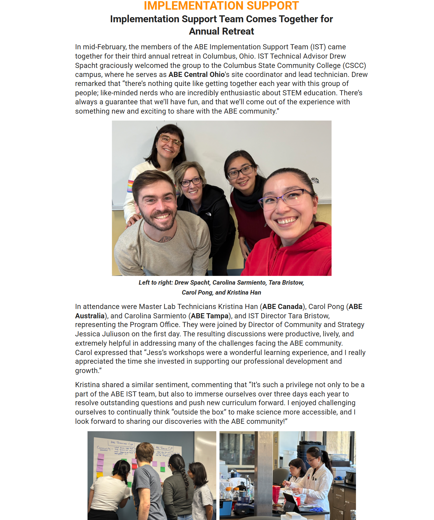 Two of the ABE team members, Dan and Carolina, were recently highlighted in the March 2026 edition of ABE News for their outstanding contributions toward advancing the goals and vision of the Amgen Biotech Experience Program. Their dedication and impact continue to strengthen the program’s mission and inspire the broader ABE community.