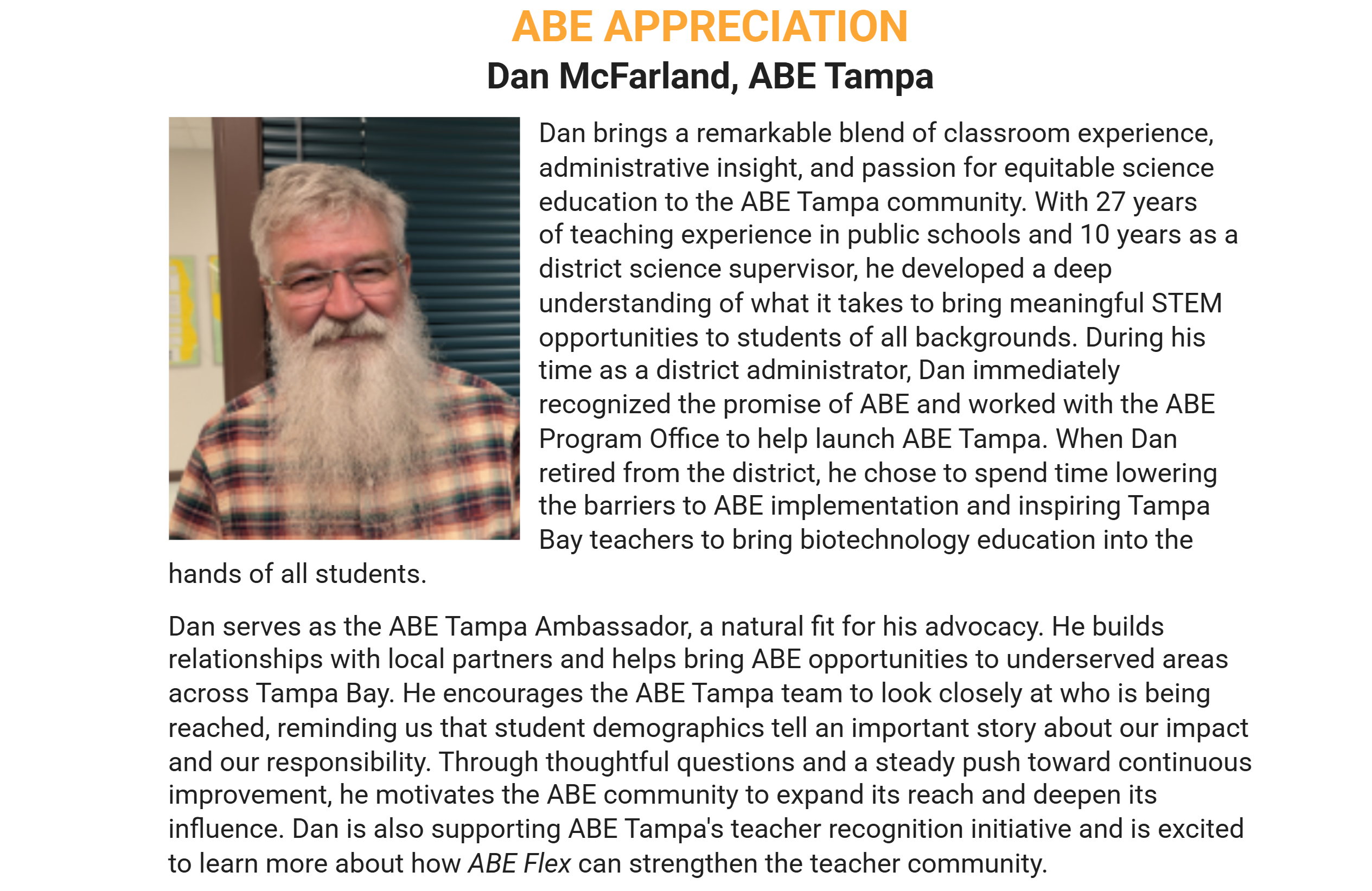 We look forward to connecting with teachers across Florida and sharing how ABE can help you bring authentic biotechnology into your classroom- for free!